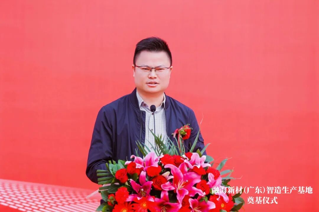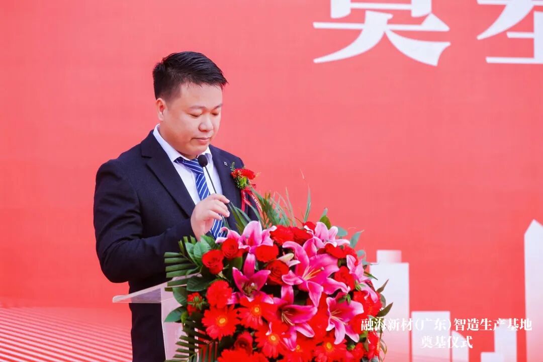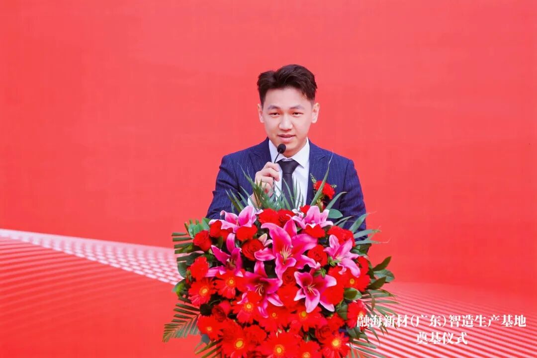 坚美铝材销售副总蒋秋荣,代表合作伙伴登台,送上对融海新基地奠基的诚挚祝福,并明确表达了与融海新材深化合作、携手共赢的强烈意愿,彰显了上下游企业协同发展的深厚共识。