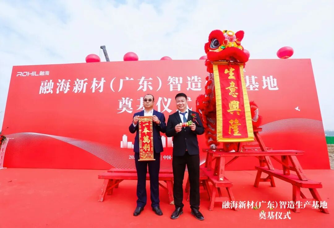 2025年12月10日,融海新材总投资3亿元,占地50000平方米,年量产30000吨的(广东)智造生产基地奠基盛典盛大启幕。融海新材董事长许灵勇、总经理许俊勇携核心管理团队,与行业领导、核心合作伙伴齐聚肇庆,共同见证这一标注产业升级新坐标的里程碑时刻。