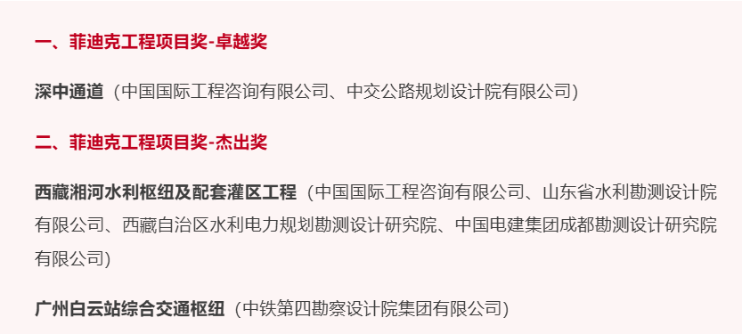 “菲迪克工程项目奖”被誉为国际工程咨询领域的“诺贝尔奖”,旨在表彰全球范围内在诚信管理、技术创新、可持续发展和高质量实施方面表现卓越的工程项目。