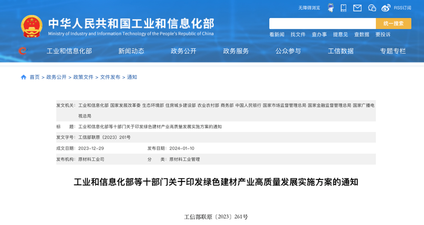“2035年,我国将广泛形成绿色生产生活方式,碳排放达峰后稳中有降;2060年,我国的绿色生产生活方式进入成熟期,碳中和目标将实现,全民共建美好生活。”在“碳达峰、碳中和”的大背景下,加快推进建材行业碳减排,促进行业转型升级,不仅是当前建材行业工作的重点,也是地方政府和协会组织工作的重要抓手。2023年发布的《绿色建材产业高质量发展实施方案》中提出到2026年我国绿色建材年营业收入超过 3000 亿元,到 2030 年,绿色建材全生命周期内“节能、减排、低碳、安全、便利和可循环”水平进一步提升,形成一批国际知名度高的绿色建材生产企业和产品品牌。